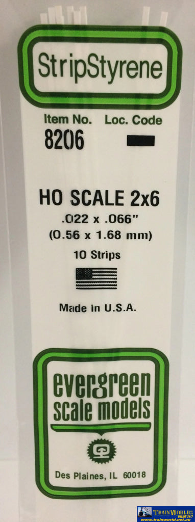 EVE-8206EvergreenPolystyreneStripOpaque White0.60mm x 1.70mm x 350mm HO-Scale (2" x 6") 10-Pack