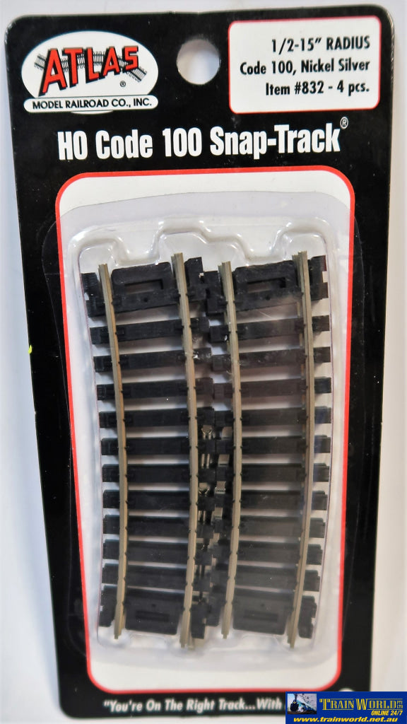 ATL-0832Atlas Snap-TrackHO Code-100Half-Curve 15" (381mm) Radius(4-Pack)