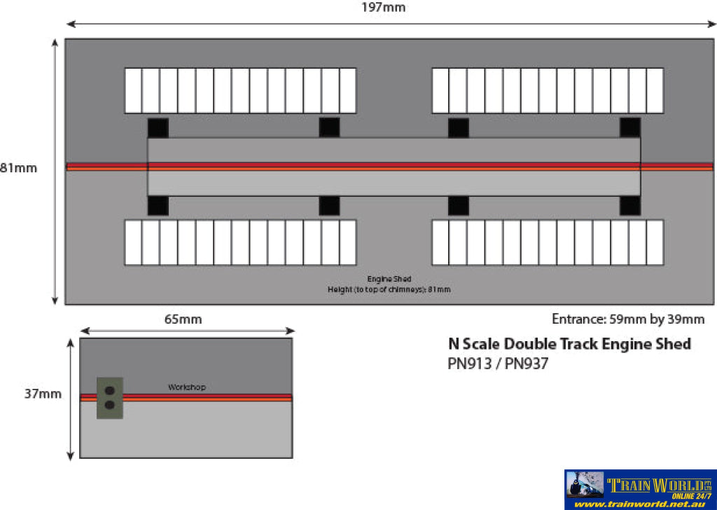 The workshop is a separate building that can be attached to the shed at any position, or left free standing. Big enough to hold two full size tender engines.