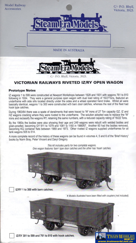 SEM-R28 Steam Era Models *Kit* VR IZ-Type or RY-Type Riveted Open-Wagons (2) HO Scale
